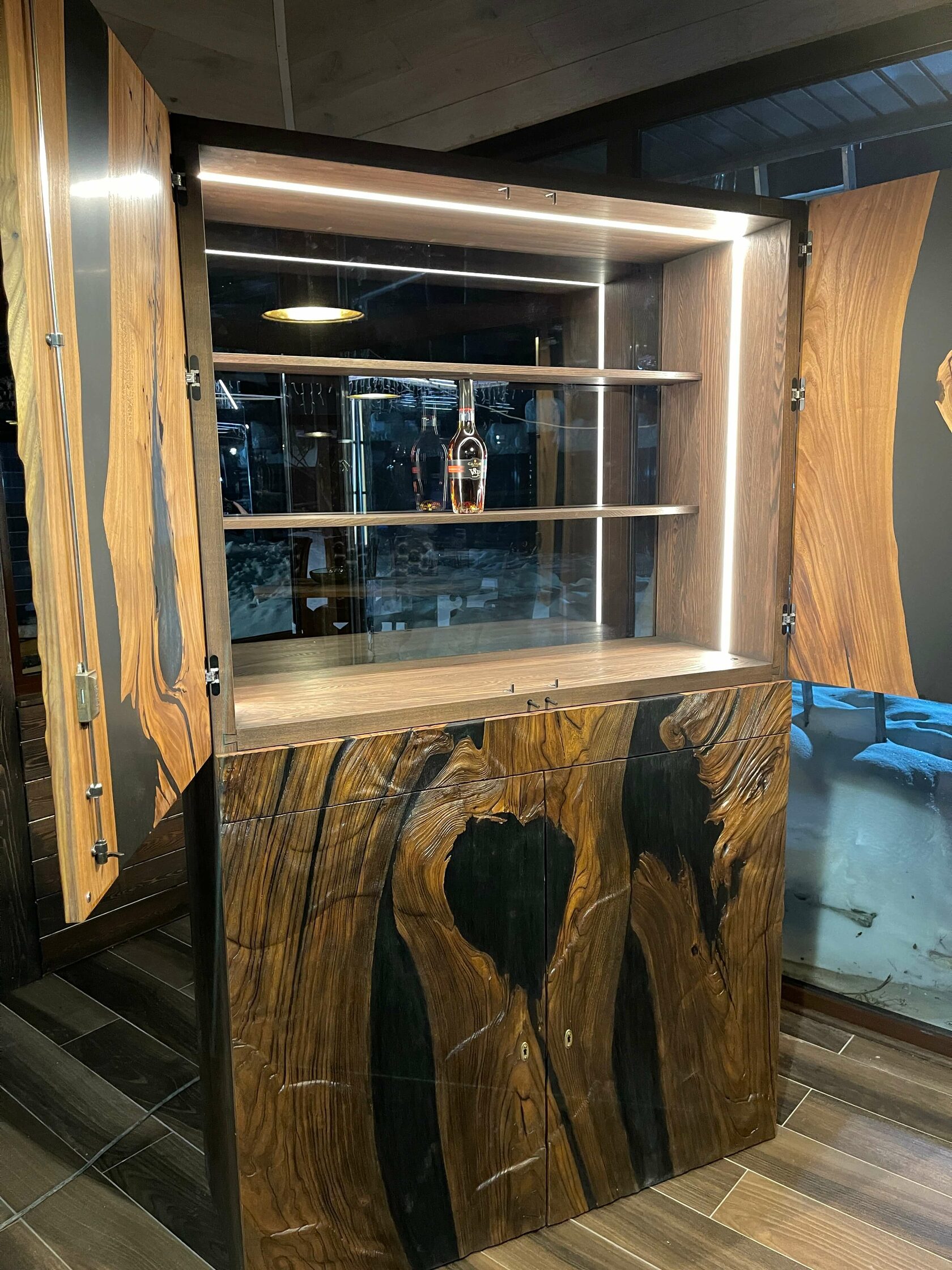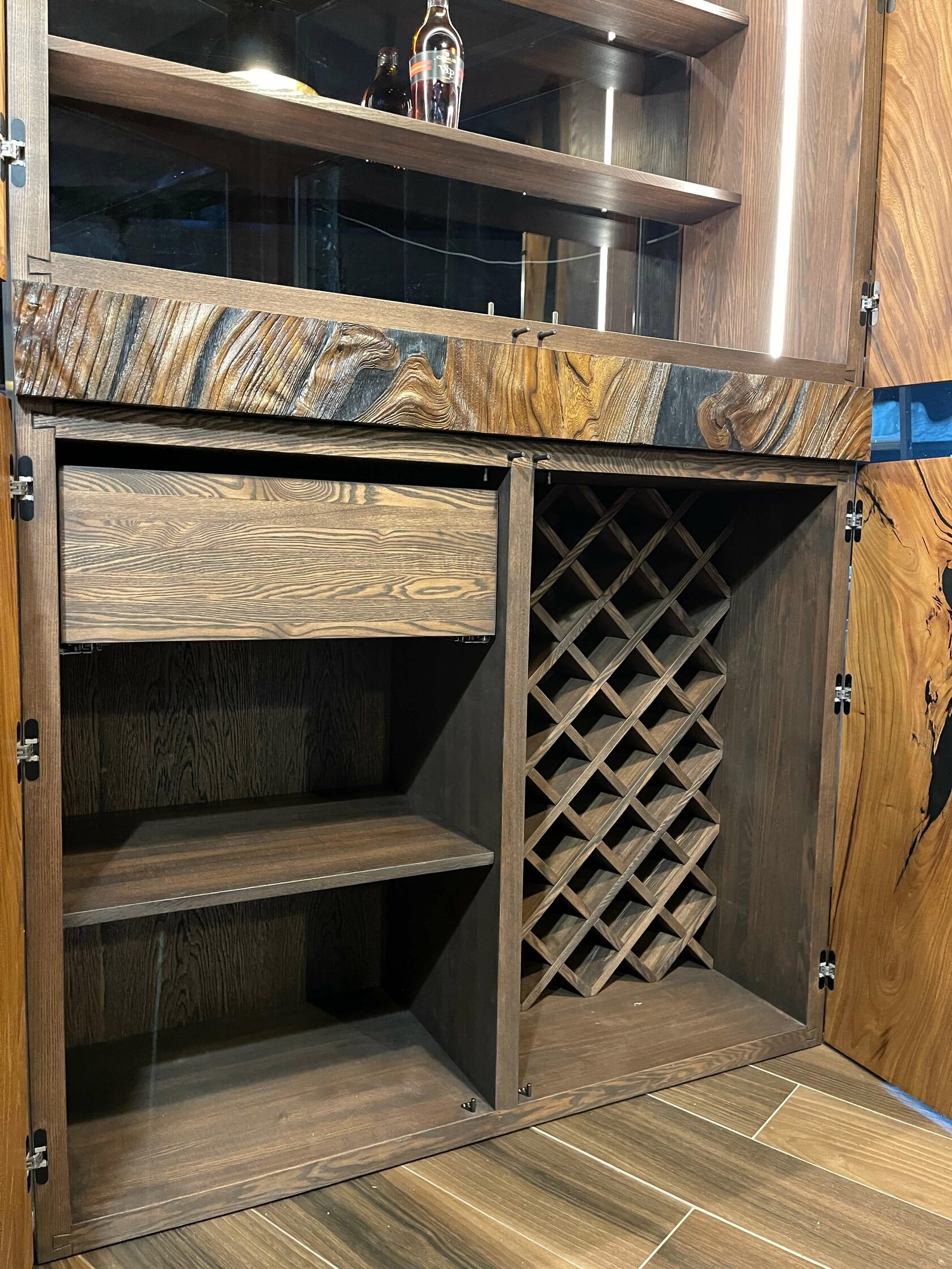 Данная модель винного кабинета была впервые представлена в России. Натуральный массив в сочетании с авторской обработкой становится произведением искусства.